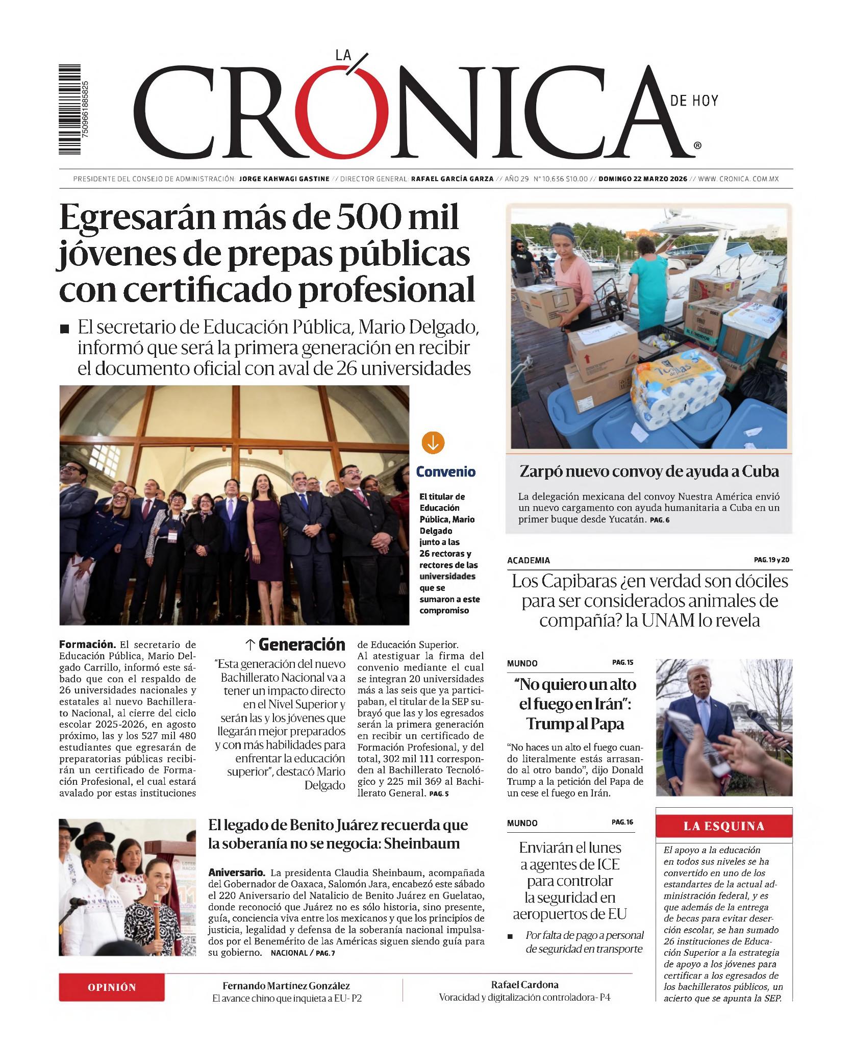 | Periodico: El Universal Fecha: Domingo 22 de Marzo de 2026 |
